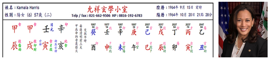 Kini ia berada di periode hidup Chen (辰), membuat Lu (祿) dan Yin (印) miliknya bisa mendiami gudang Chen (辰). Dengan demikain dapat diketahui, dirinya memiliki harapan cukup besar untuk menempati gedung putih bersama bosnya Joe Biden.